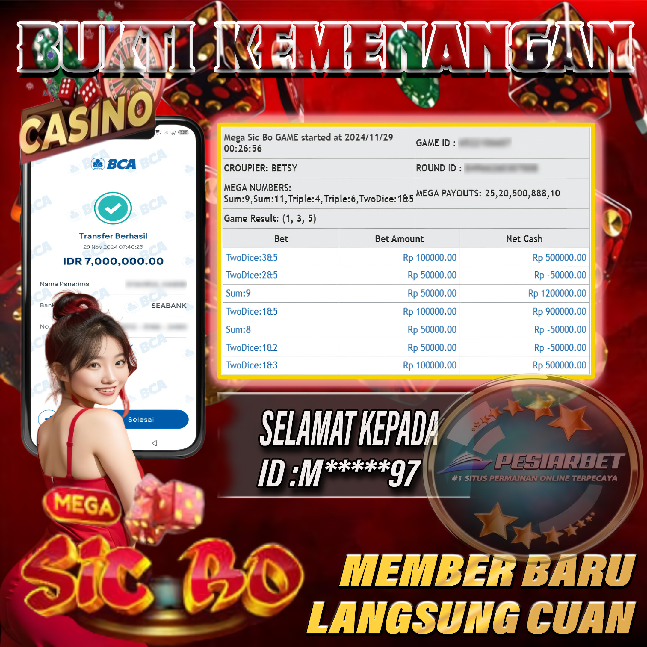 PESIARBET Bukti Kemenangan Live Casino MEGA SIC BO