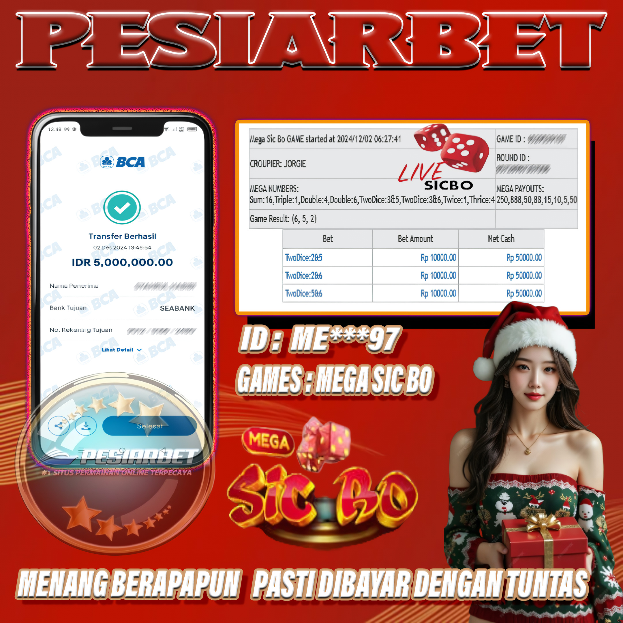 PESIARBET Bukti Kemenangan Live Casino MEGA SIC BO