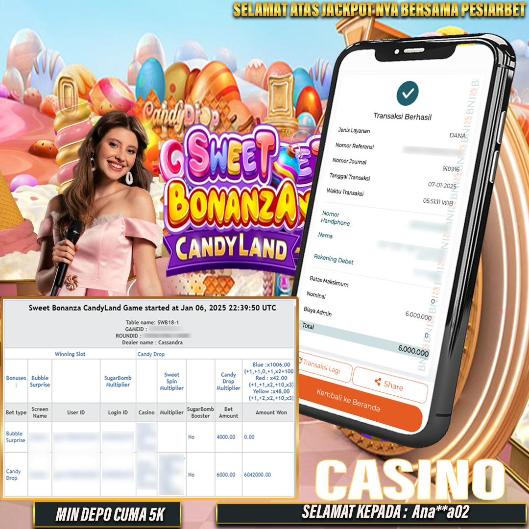 PESIARBET Bukti Kemenangan LIVE CASINO CANDYLAND