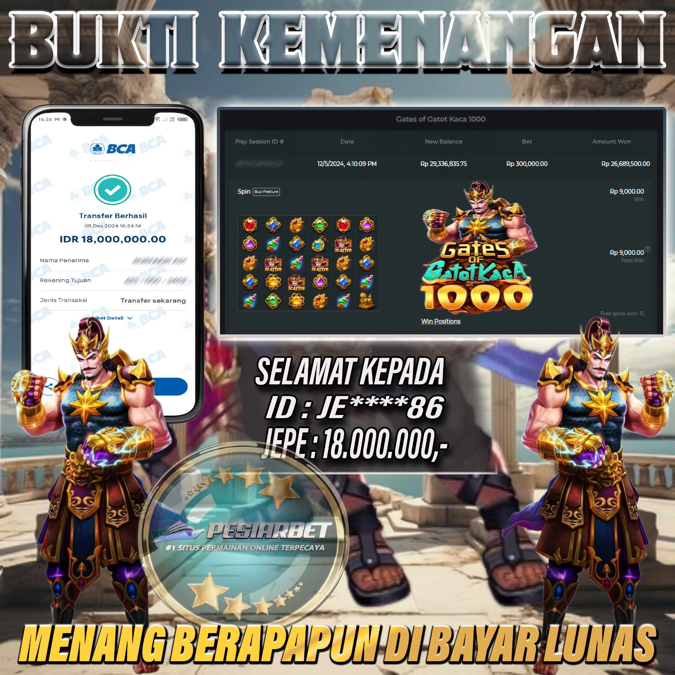 PESIARBET Bukti Kemenangan Slot GATES of GATOT KACA 1000