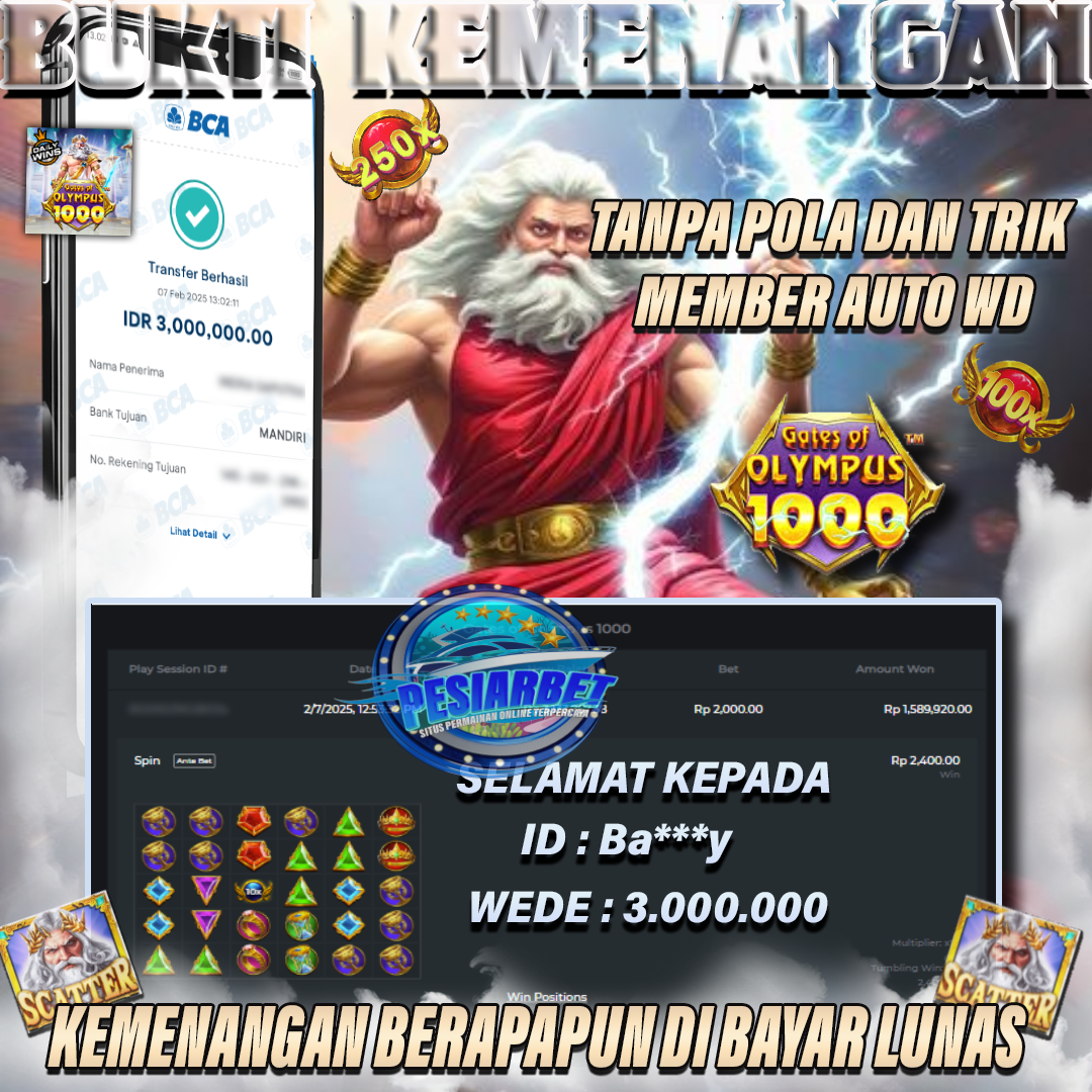 PESIARBET Bukti Kemenangan Slot GATES OF OLMYPUS 1000