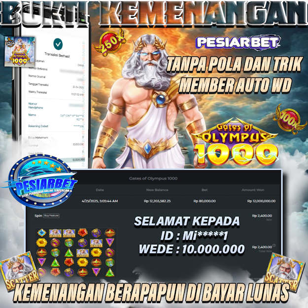 PESIARBET Bukti Kemenangan SLOT GATES OF OLYMPUS 1000