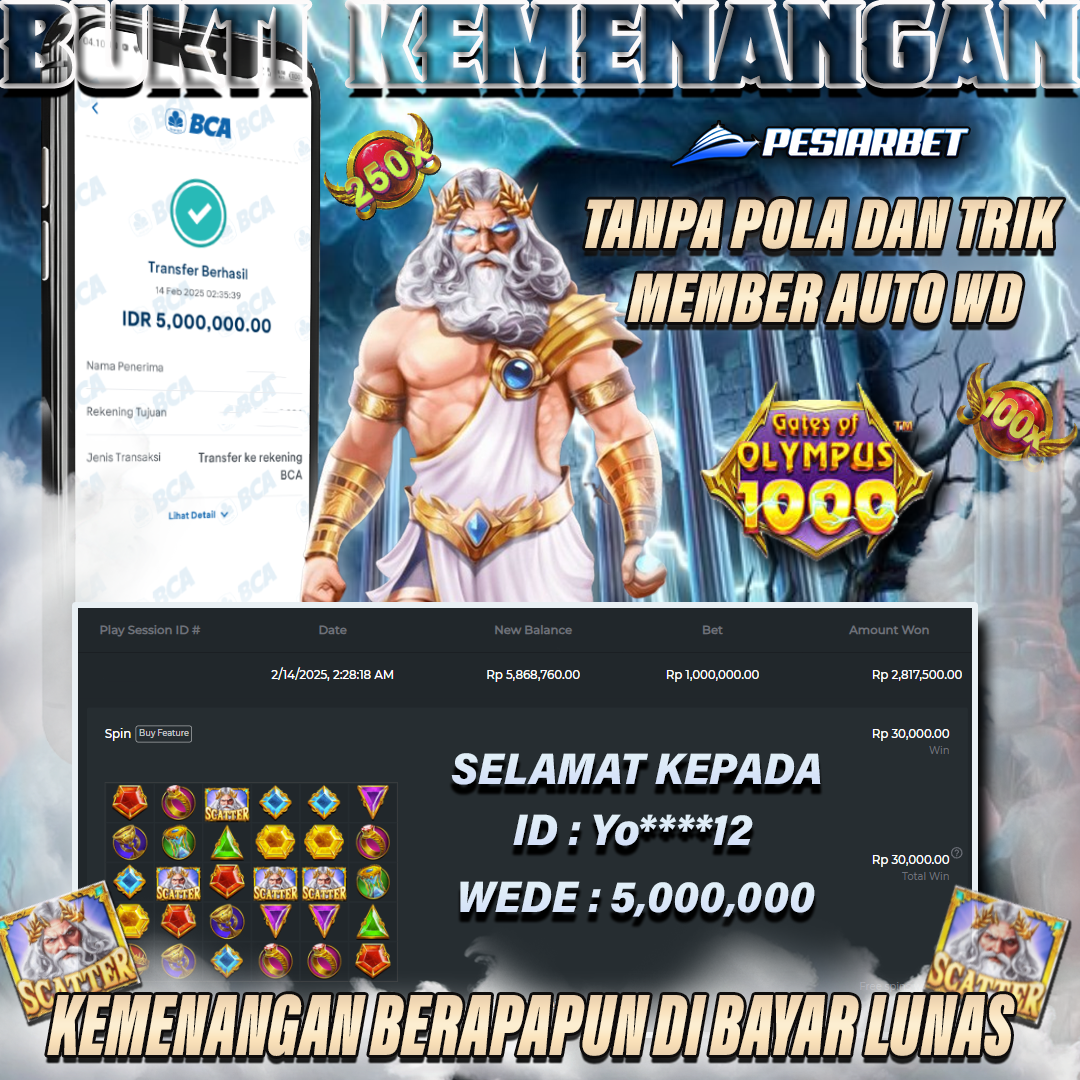 PESIARBET Bukti Kemenangan Slot GATES OF OLYMPUS 1000