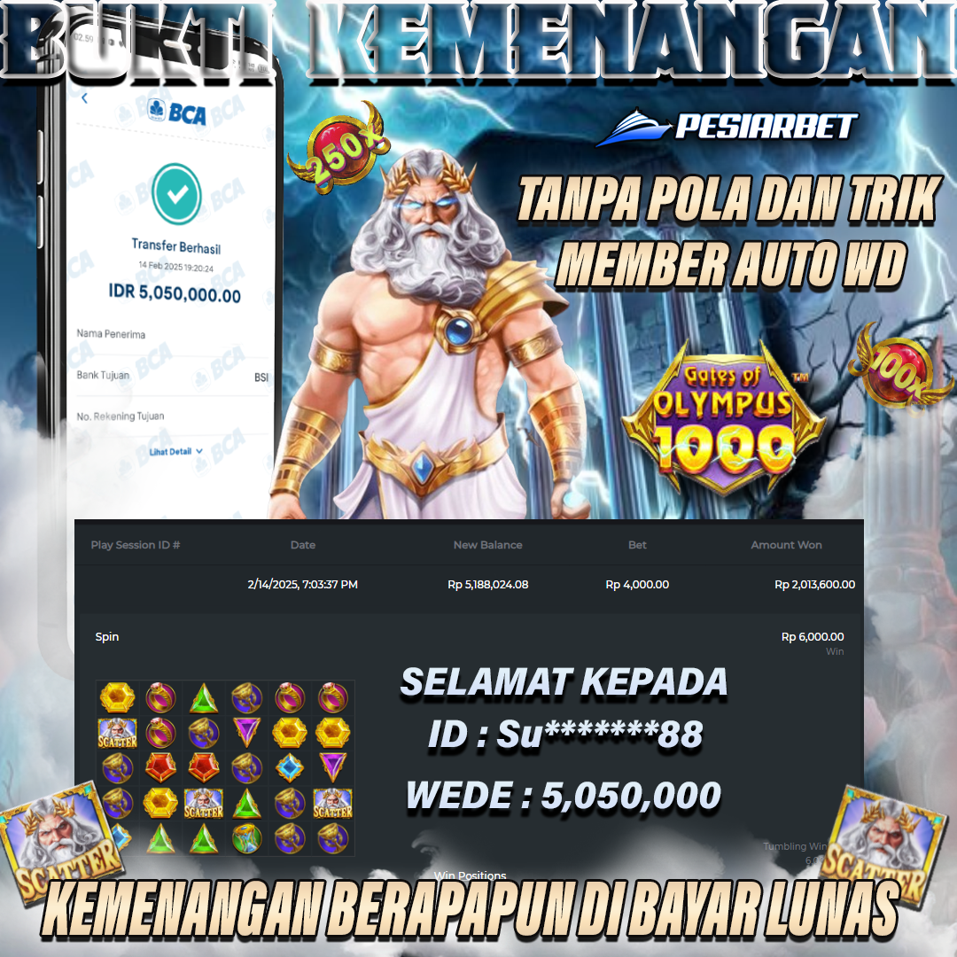 PESIARBET Bukti Kemenangan Slot GATES OF OLYMPUS 1000