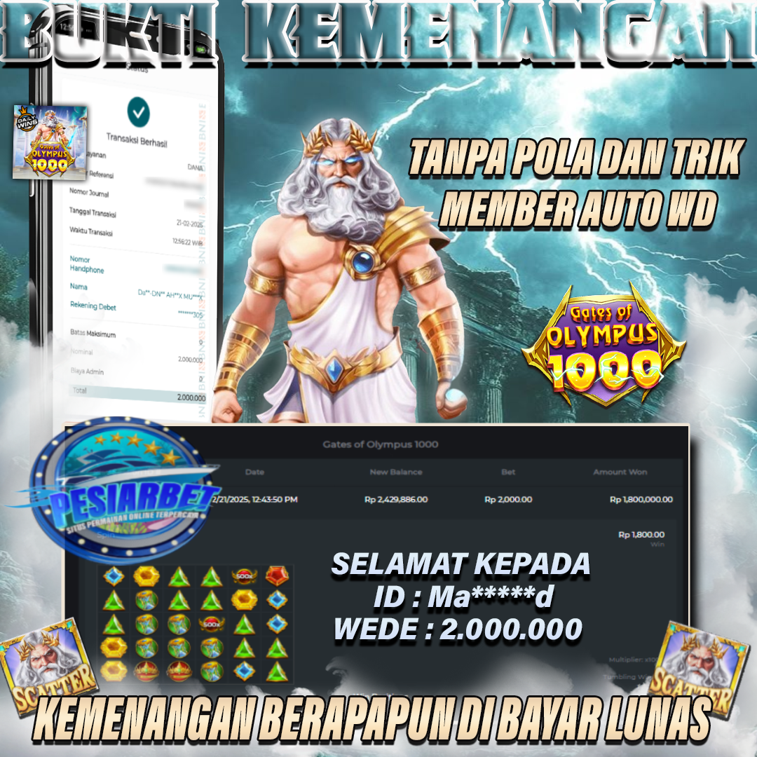 PESIARBET Bukti Kemenangan Slot GATES OF OLYMPUS 1000