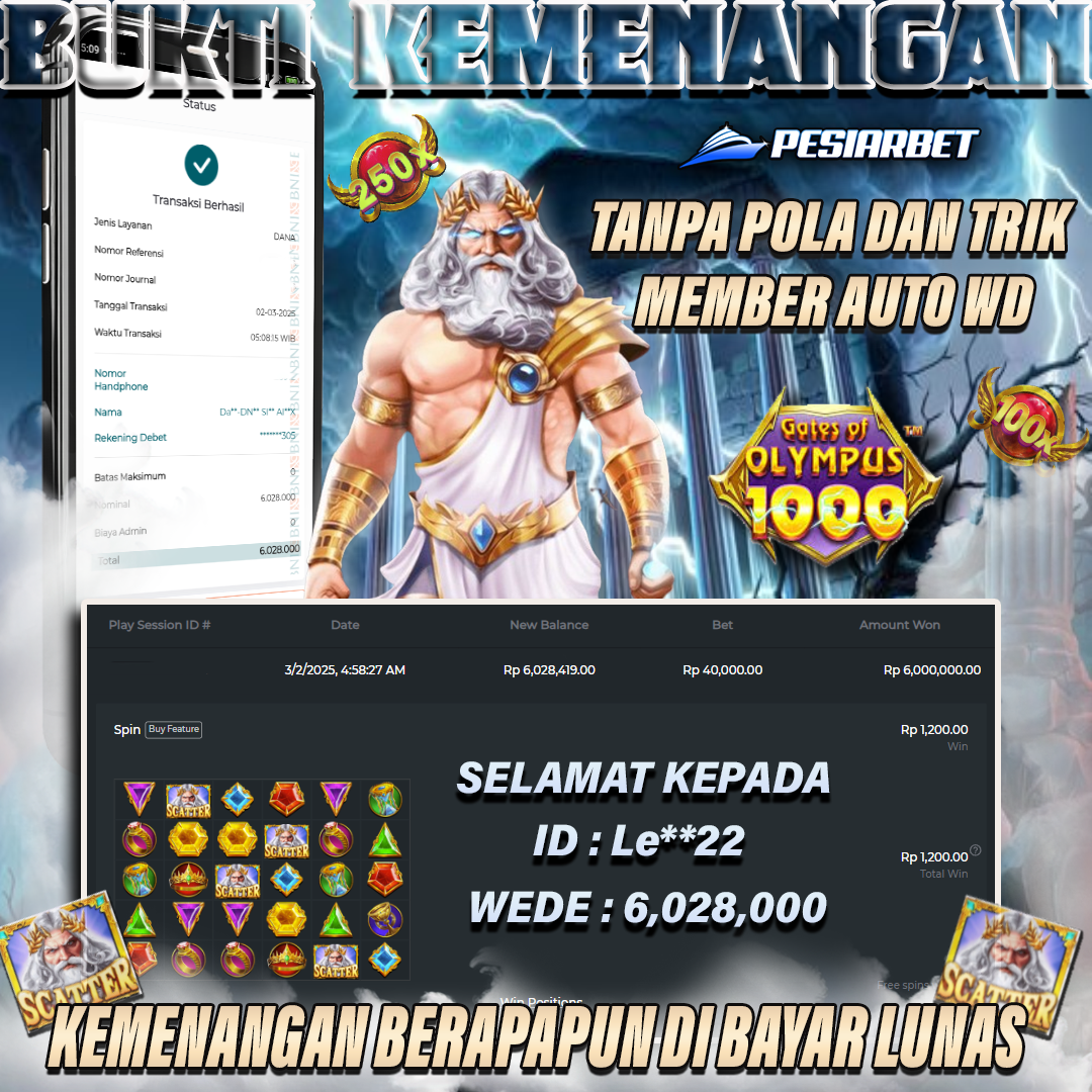 PESIARBET Bukti Kemenangan Slot GATES OF OLYMPUS 1000