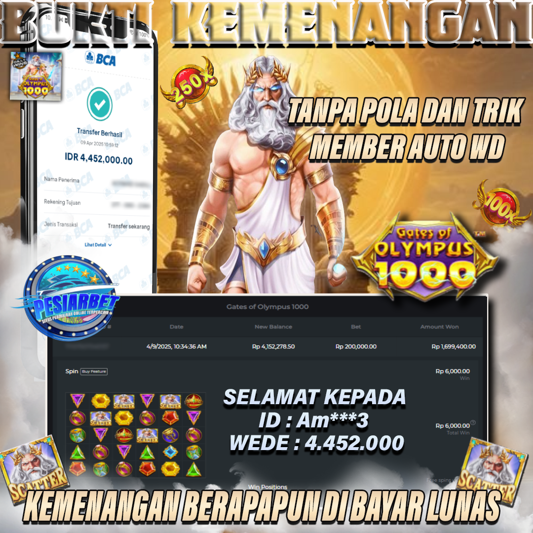 PESIARBET Bukti Kemenangan Slot GATES OF OLYMPUS 1000