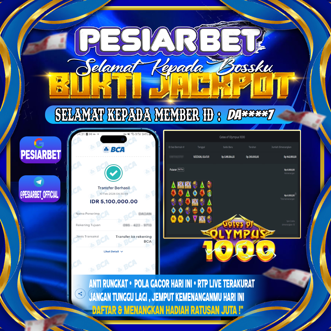 Selamat Kepada Id : DA****1 di di Atas Withdraw Rp 5,100,000 Juta Hari ini. Ditunggu Withdraw Selanjutnya dan ajak juga teman temannya bergabung di Pesiarbet.