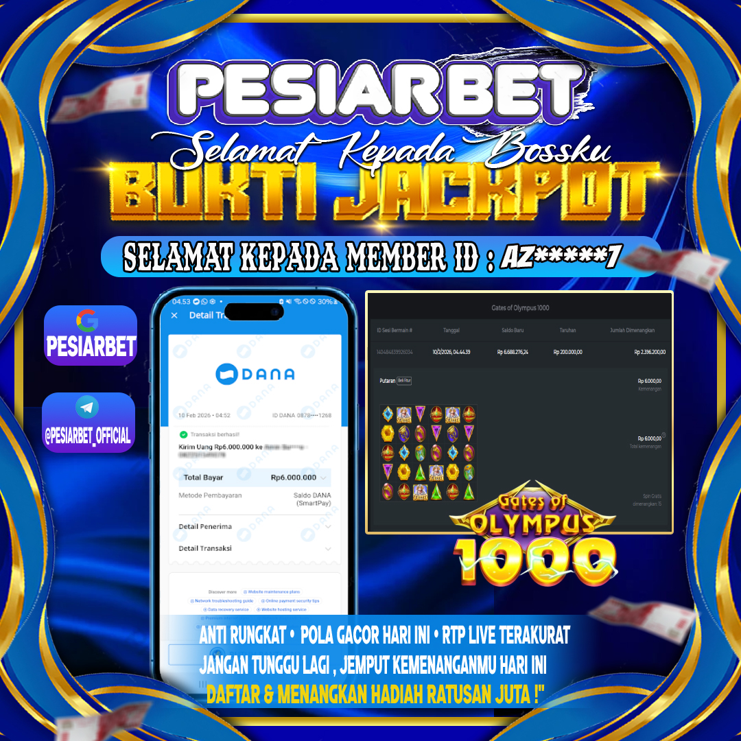 Selamat Kepada Id : AZ*******1 di di Atas Withdraw Rp 6,000,000 Juta Hari ini. Ditunggu Withdraw Selanjutnya dan ajak juga teman temannya bergabung di Pesiarbet.