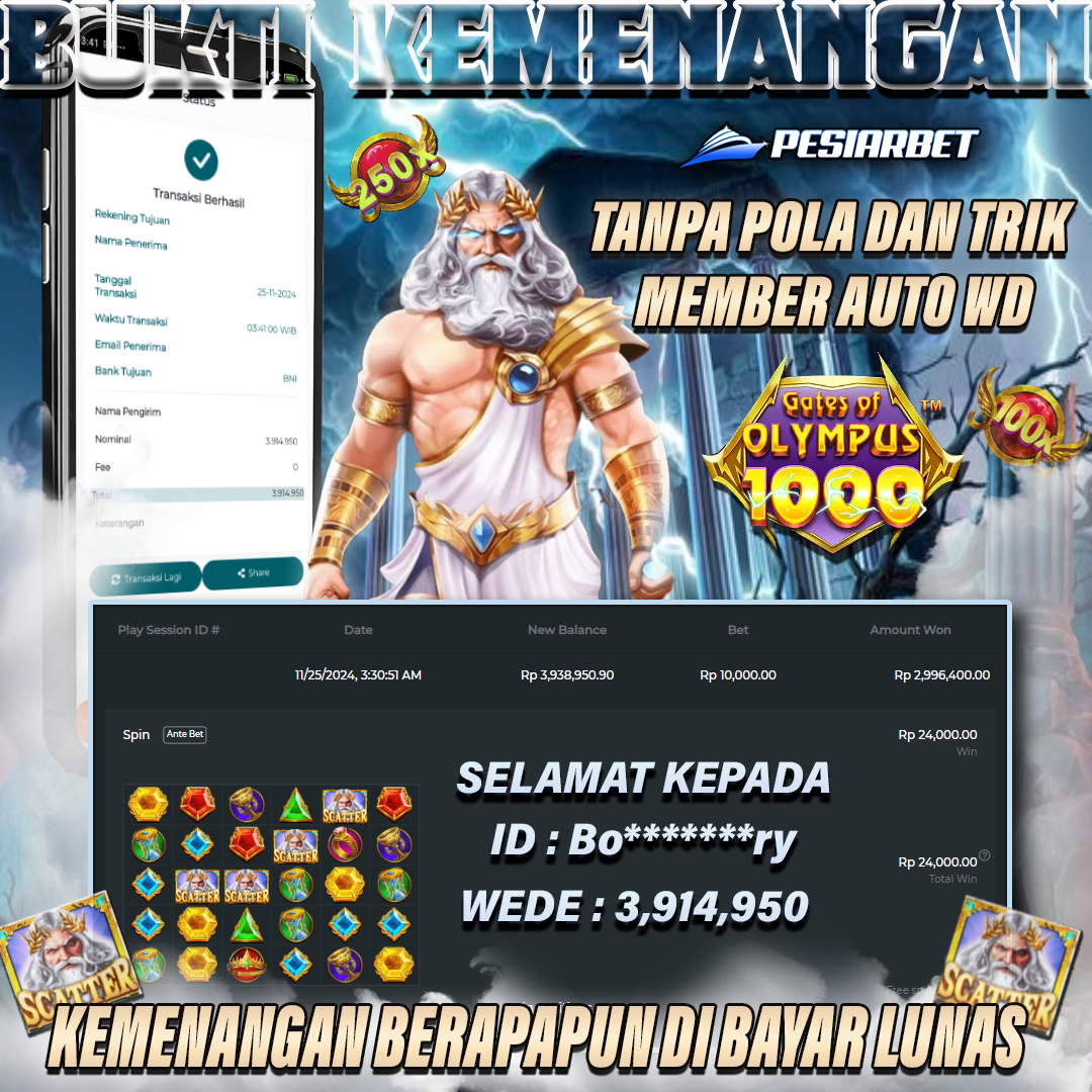 PESIARBET Bukti Kemenangan Slot GATES OF OLYMPUS 1000
