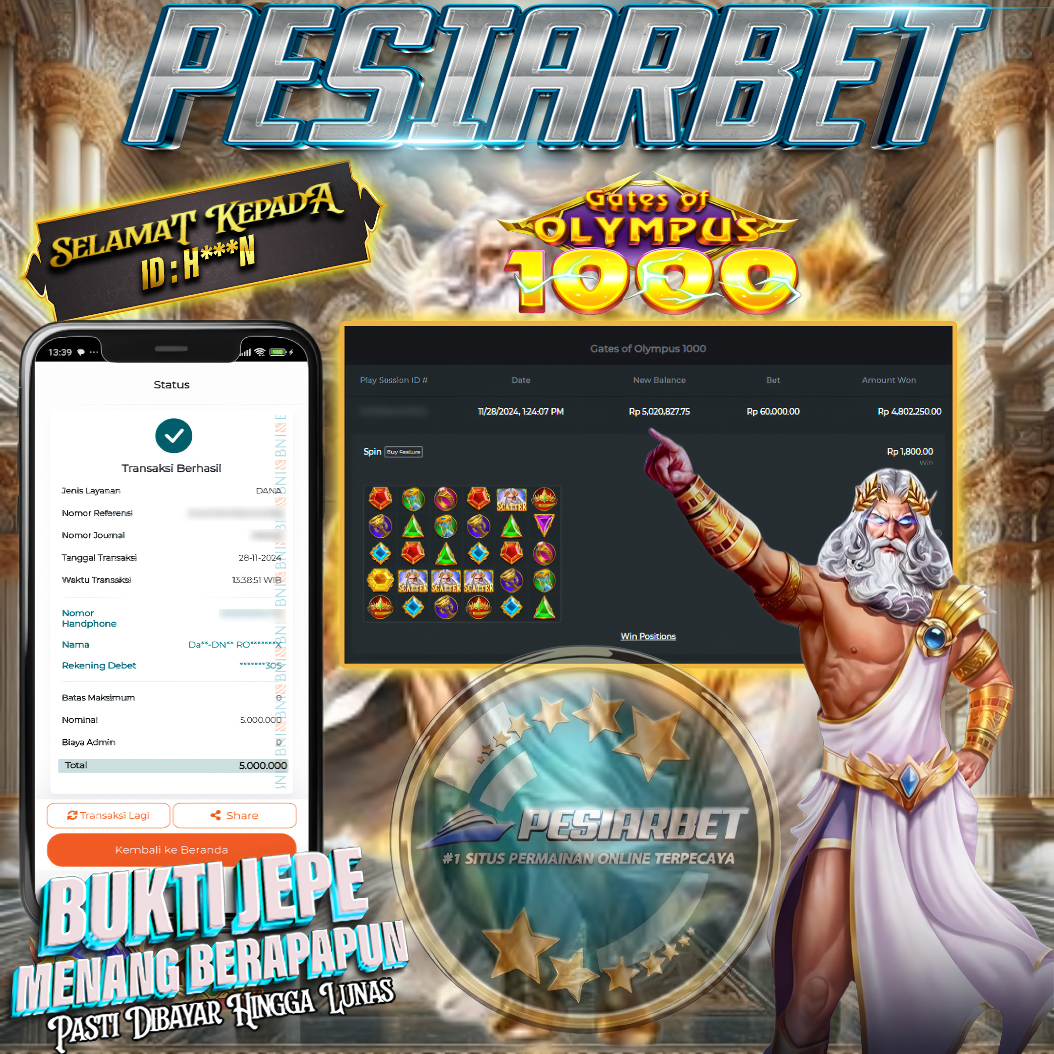 PESIARBET Bukti Kemenangan Slot GATES of OLYMPUS 1000