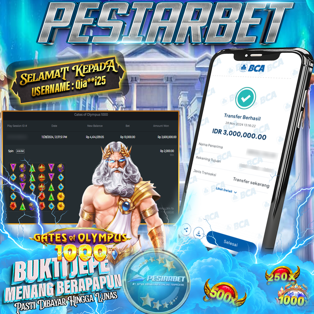 PESIARBET Bukti Kemenangan Slot GATES of OLYMPUS 1000