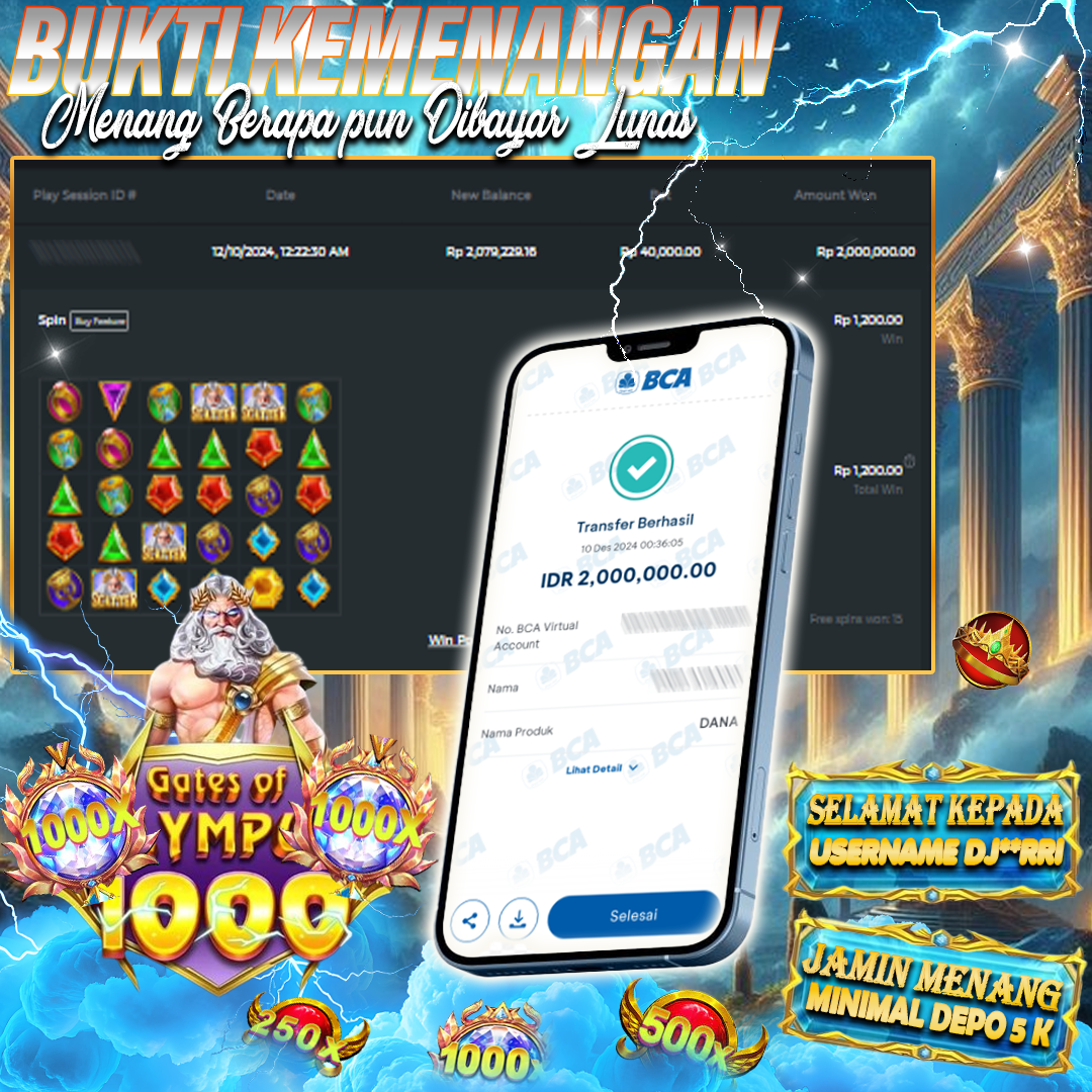 PESIARBET Bukti Kemenangan Slot GATES OF OLYMPUS 1000