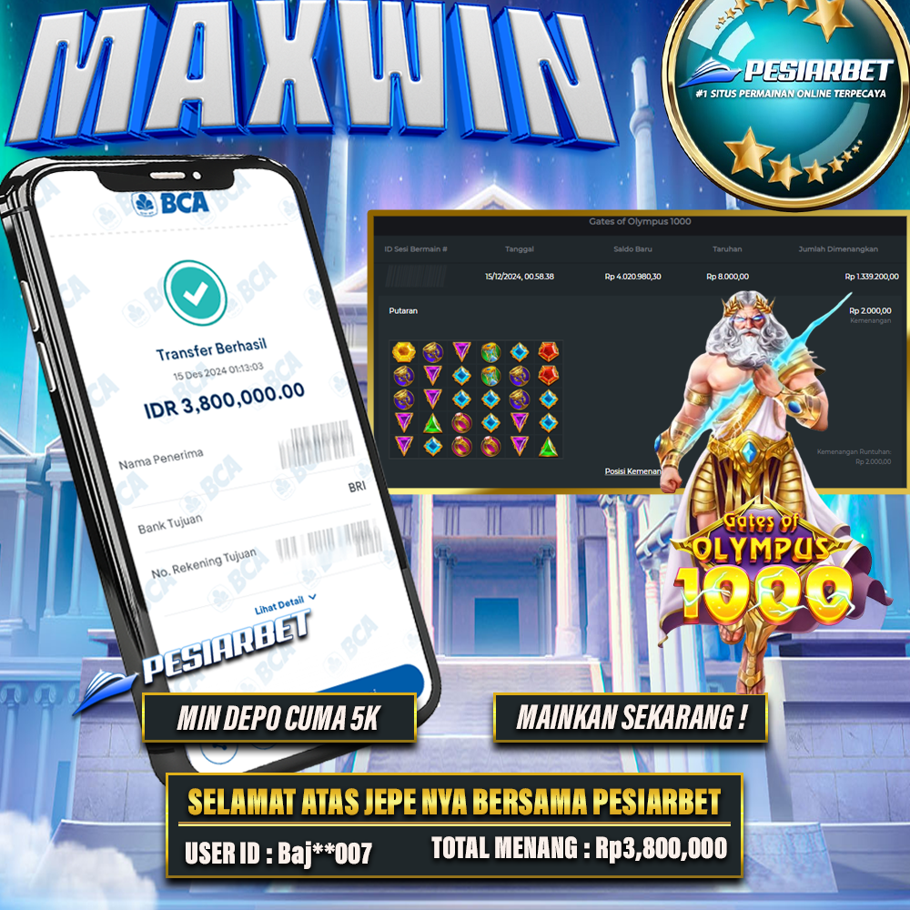 PESIARBET Bukti Kemenangan Slot GATES OF OLYMPUS 1000