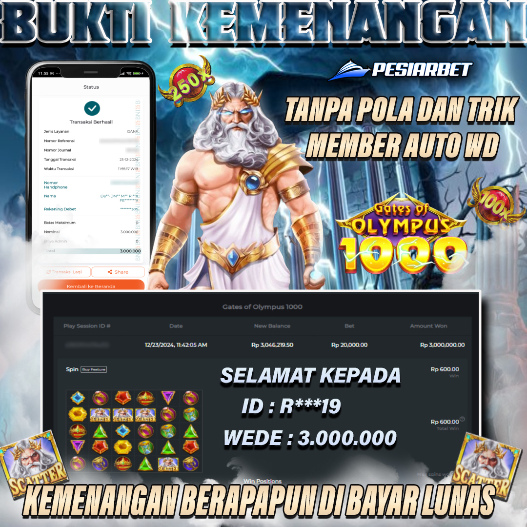 PESIARBET Bukti Kemenangan Slot GATES OF OLYMPUS 1000
