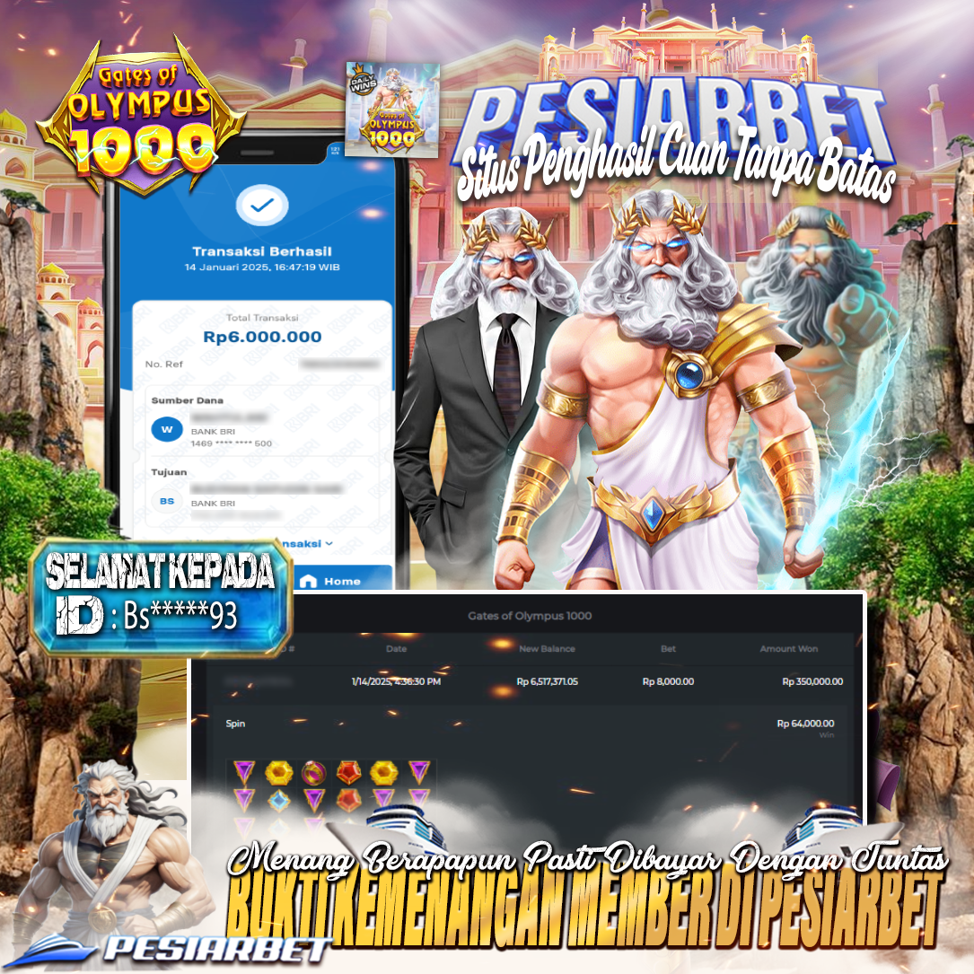 PESIARBET Bukti Kemenangan Slot GATES OF OLYMPUS 1000