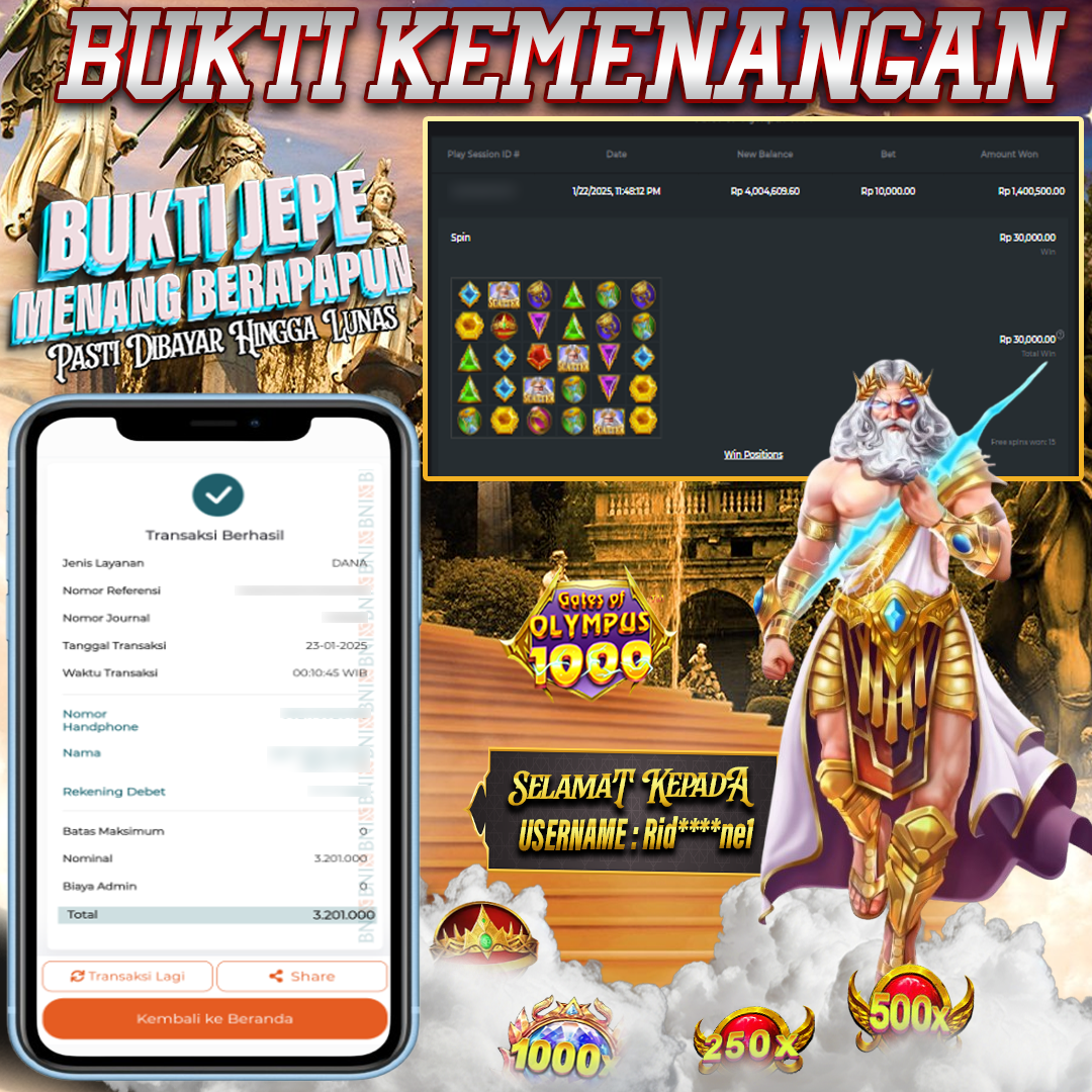 PESIARBET Bukti Kemenangan Slot GATES OF OLYMPUS 1000