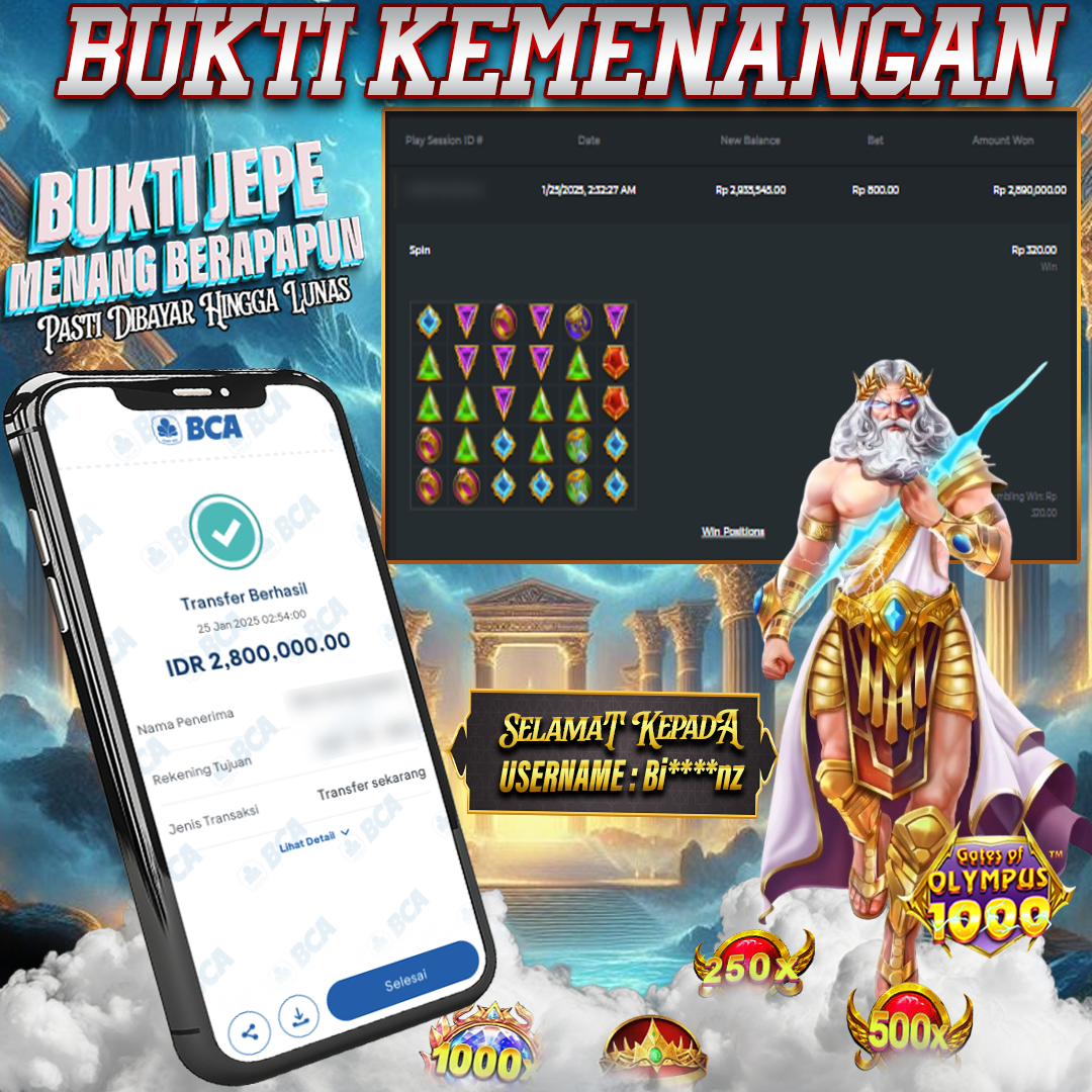 PESIARBET Bukti Kemenangan Slot GATES OF OLYMPUS 1000