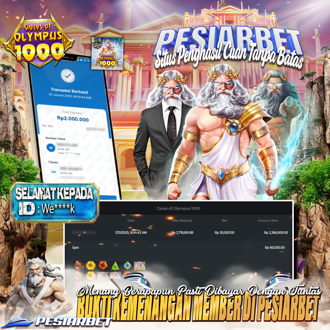 PESIARBET Bukti Kemenangan Slot GATES OF OLYMPUS 1000