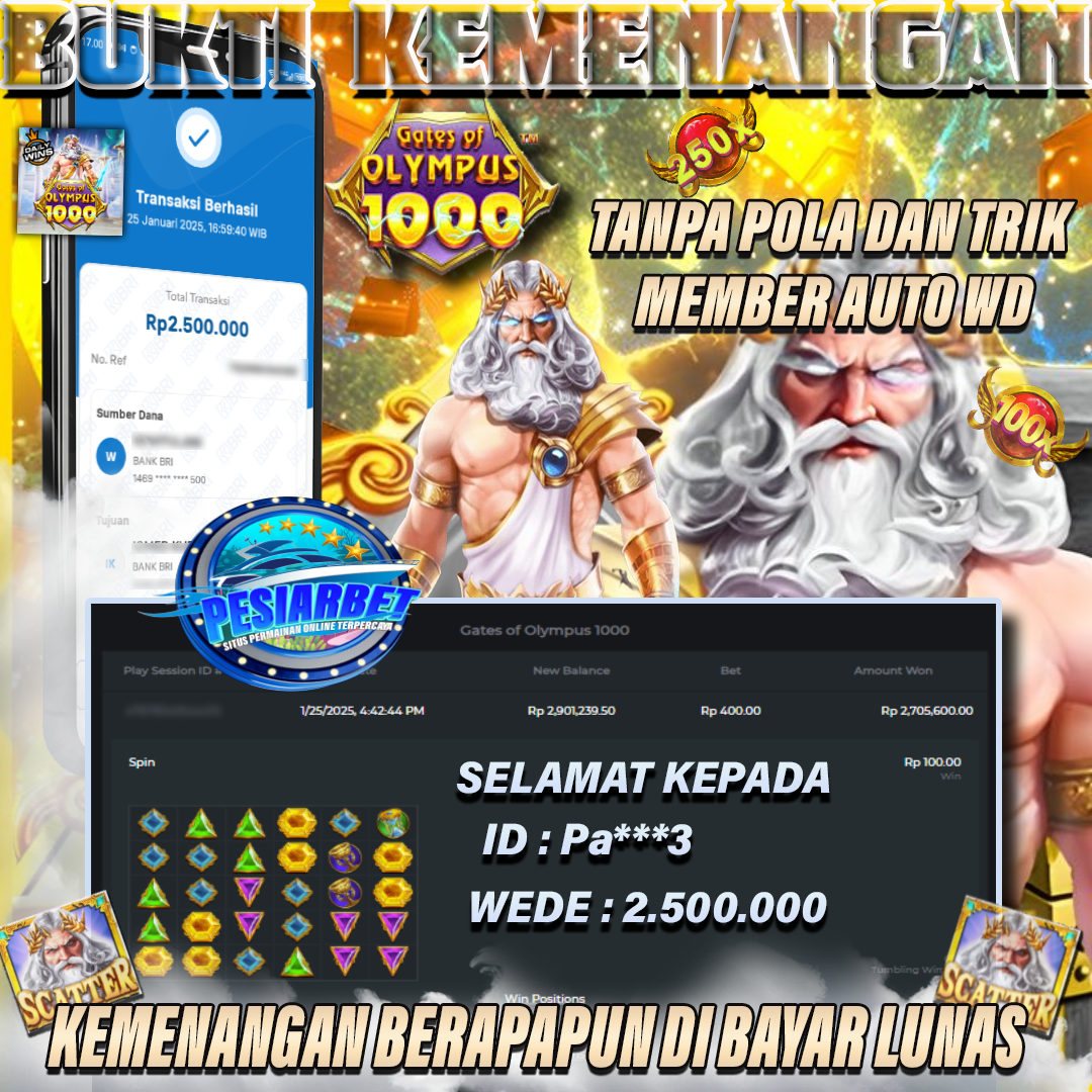 PESIARBET Bukti Kemenangan Slot GATES OF OLYMPUS 1000