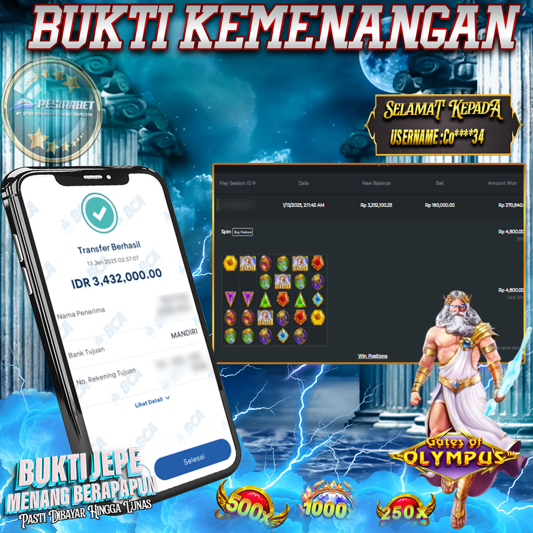 PESIARBET Bukti Kemenangan Slot GATES OF OLYMPUS