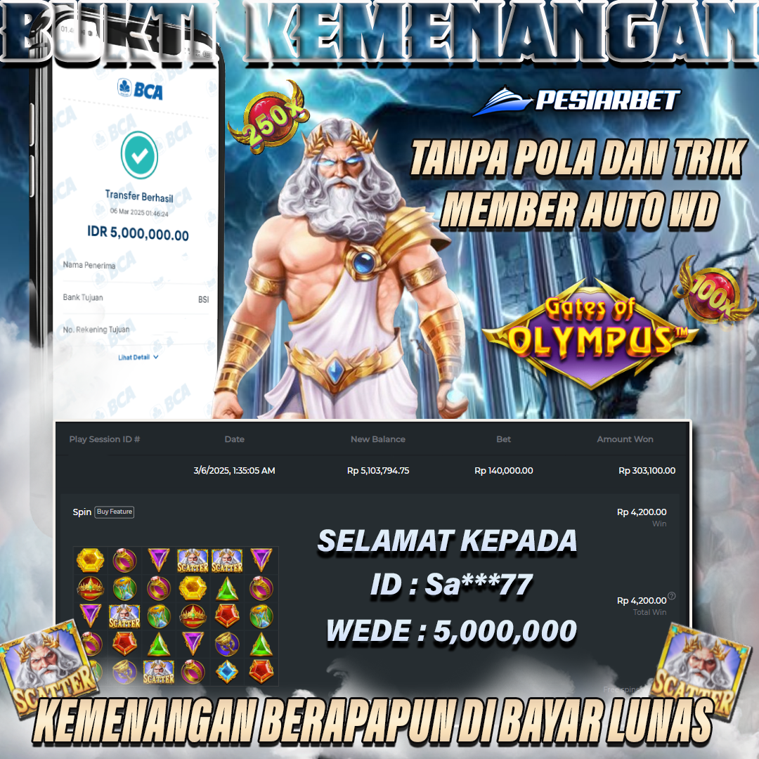 PESIARBET Bukti Kemenangan Slot GATES OF OLYMPUS