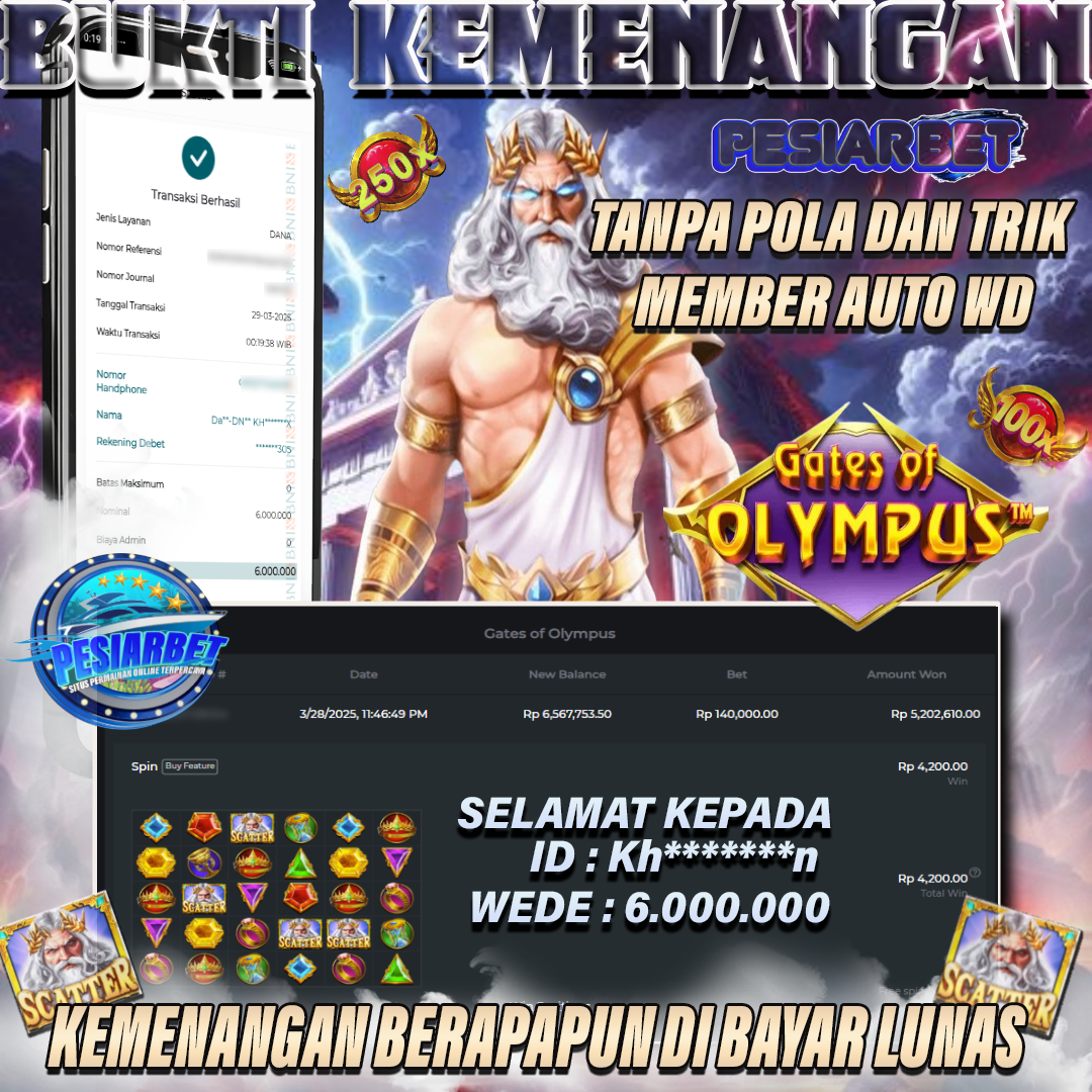 PESIARBET Bukti Kemenangan Slot GATES OF OLYMPUS
