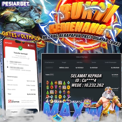 PESIARBET Bukti Kemenangan Slot GATES OF OLYMPUS