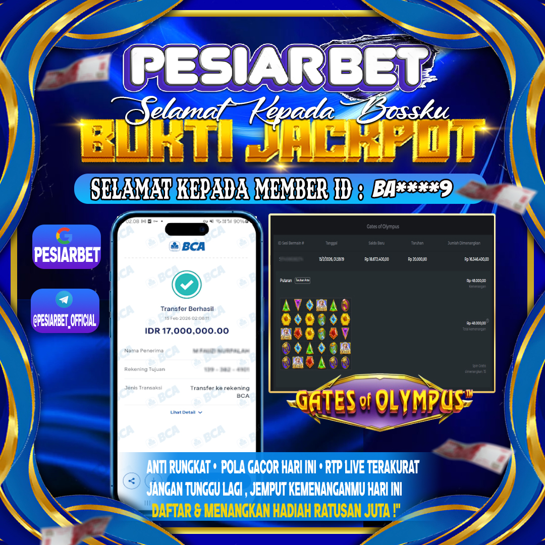 Selamat Kepada Id : BA******9 di di Atas Withdraw Rp 17,000,000 Juta Hari ini. Ditunggu Withdraw Selanjutnya dan ajak juga teman temannya bergabung di Pesiarbet.