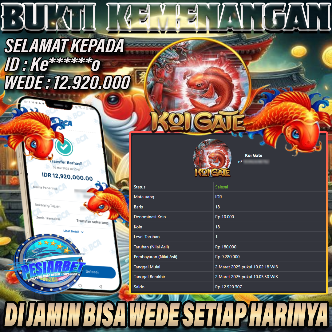 PESIARBET Bukti Kemenangan Slot KOI GATE
