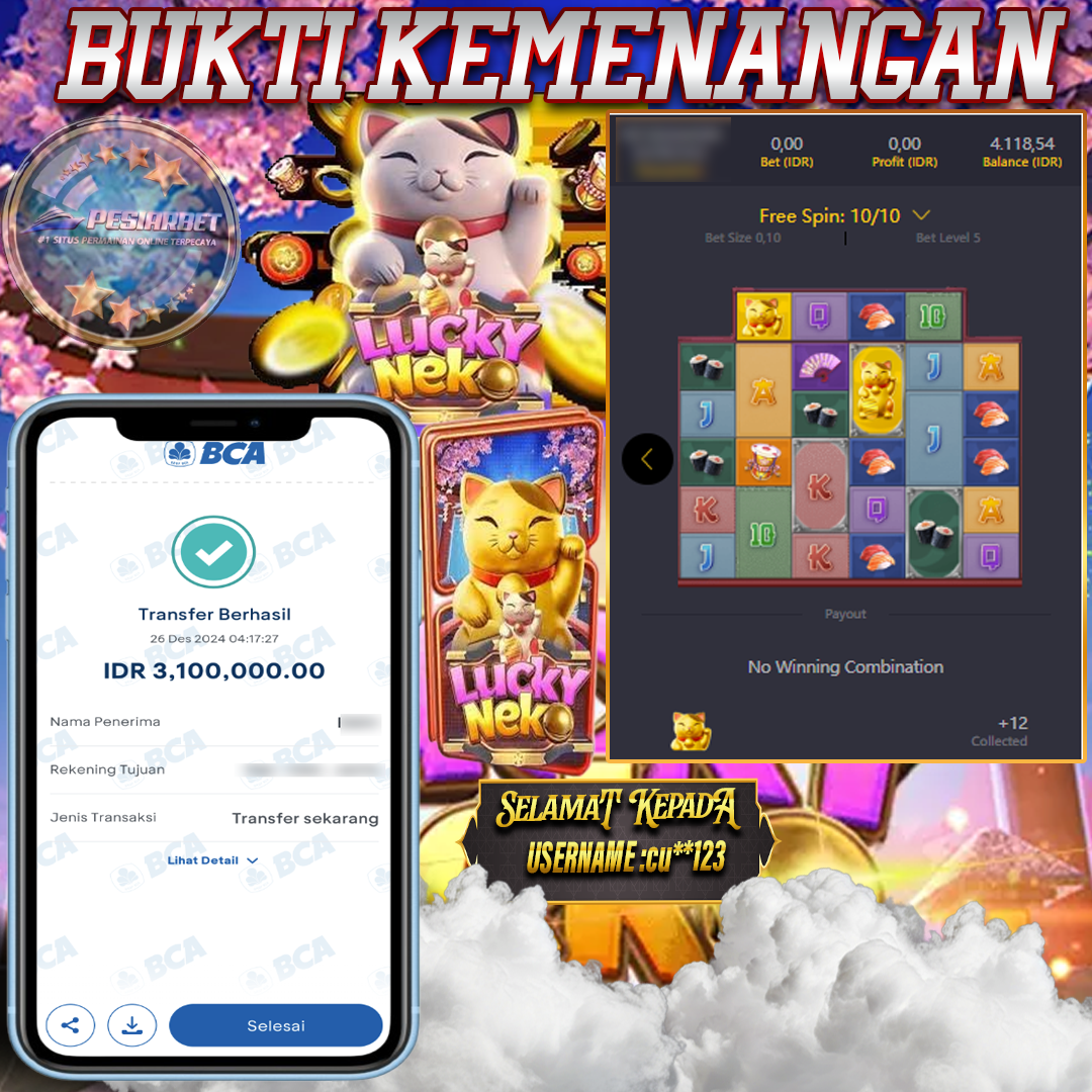 PESIARBET Bukti Kemenangan Slot LUCKY NEKO