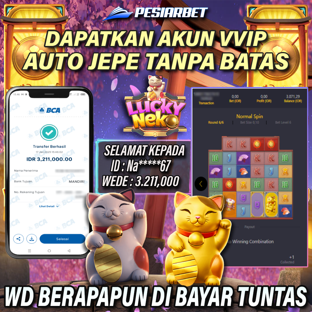PESIARBET Bukti Kemenangan Slot LUCKY NEKO