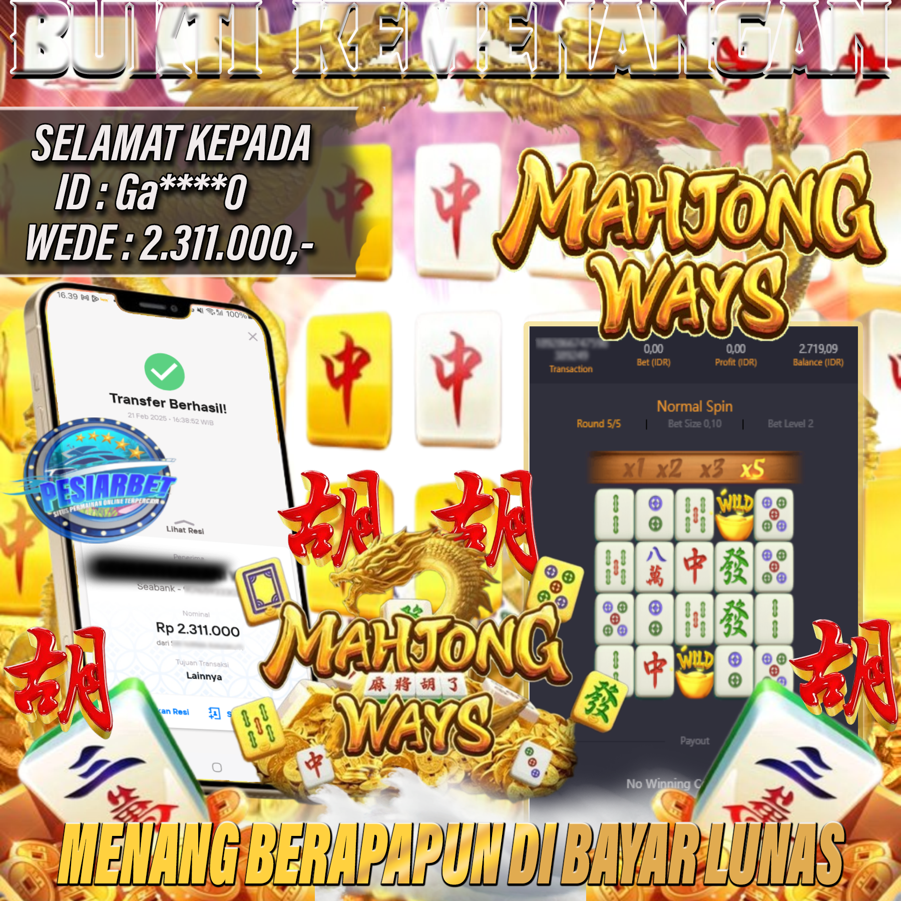 PESIARBET Bukti Kemenangan Slot MAHJONG WAYS