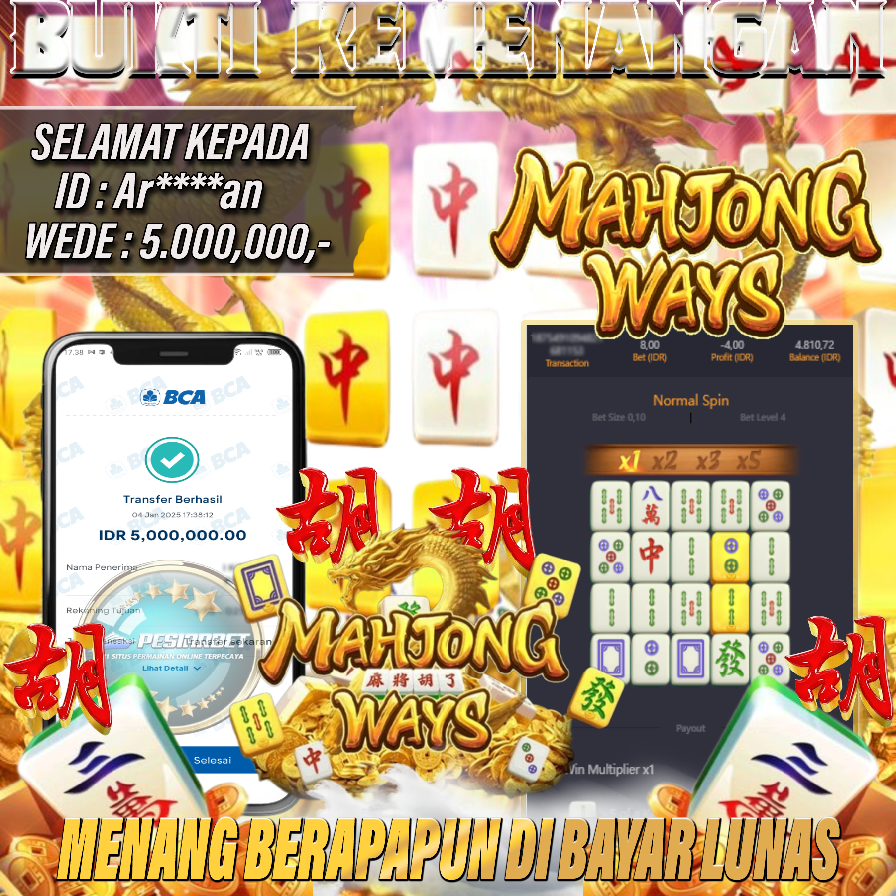 PESIARBET Bukti Kemenangan Slot MAHJONG WAYS