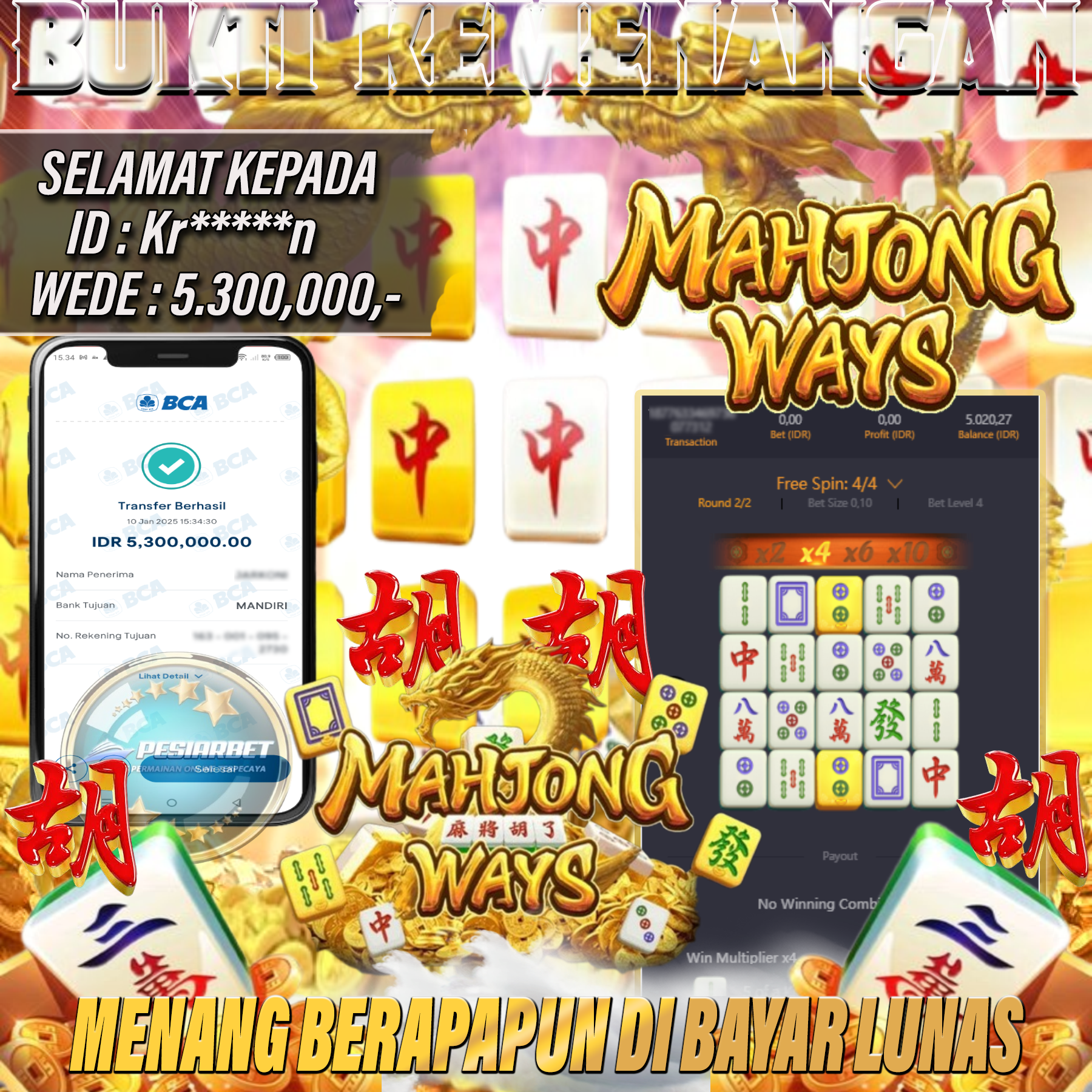 PESIARBET Bukti Kemenangan Slot MAHJONG WAYS