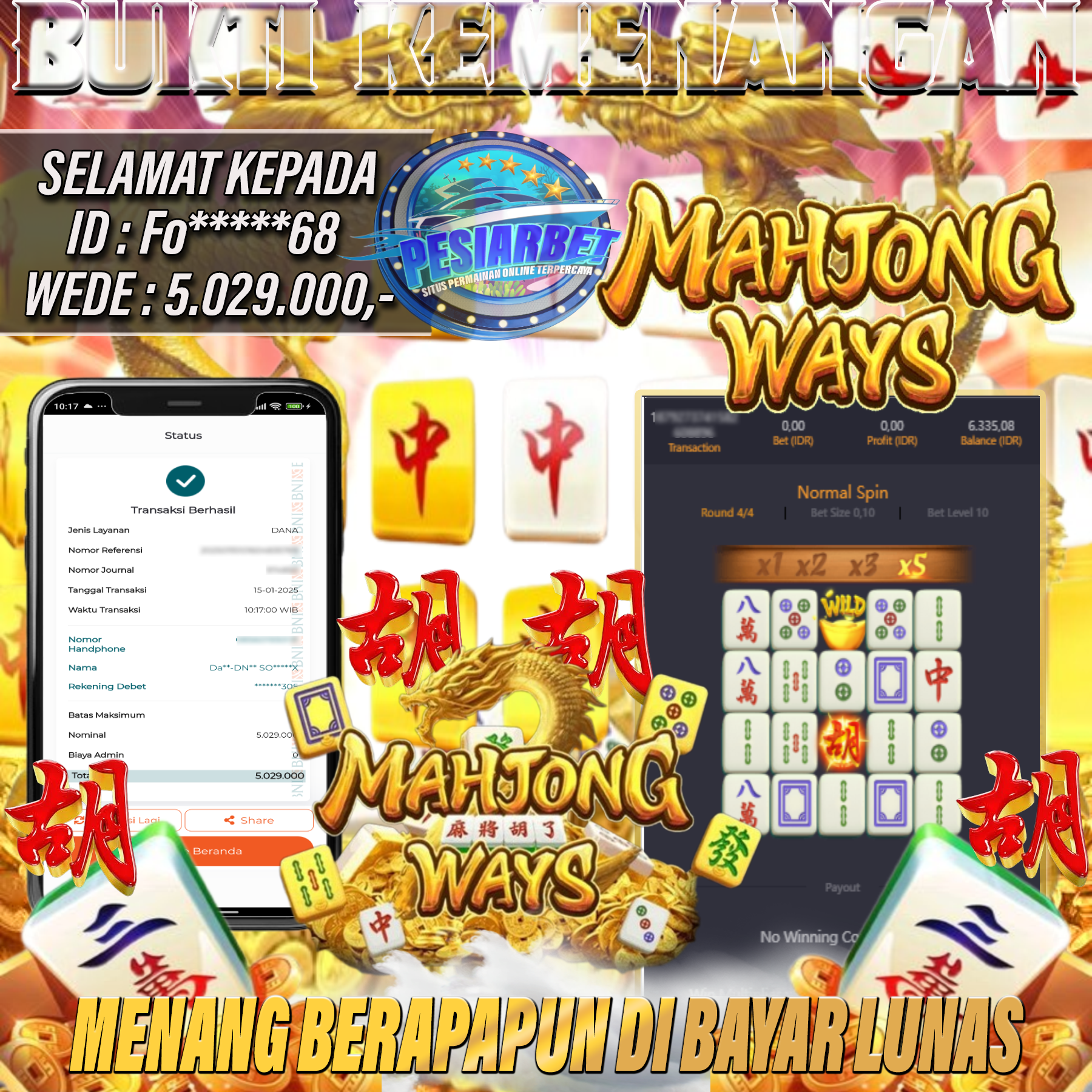 PESIARBET Bukti Kemenangan Slot MAHJONG WAYS