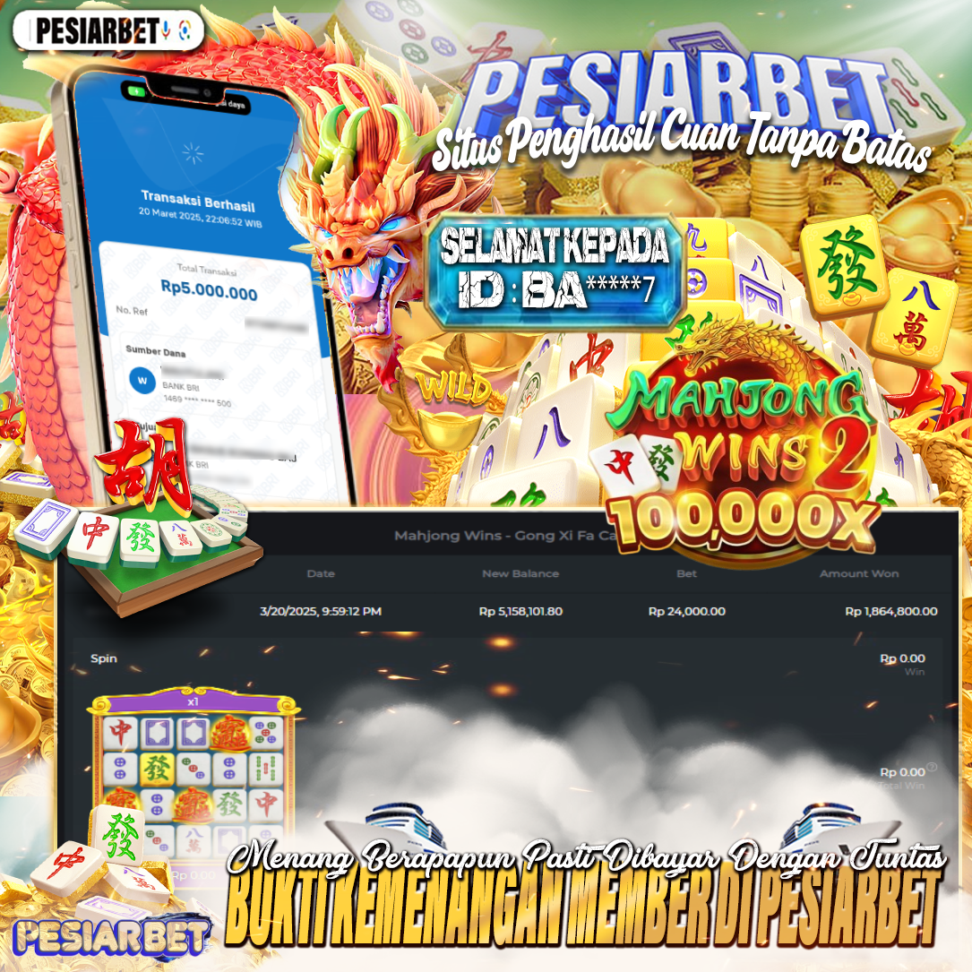 PESIARBET Bukti Kemenangan Slot MAHJONG WINS 2 100,000X