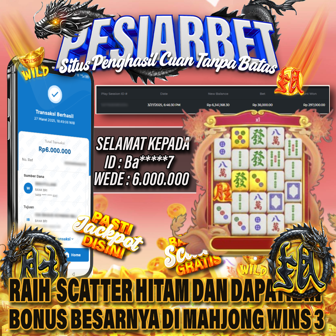 PESIARBET Bukti Kemenangan Slot MAHJONG WINS 3 BLACK SCATTER