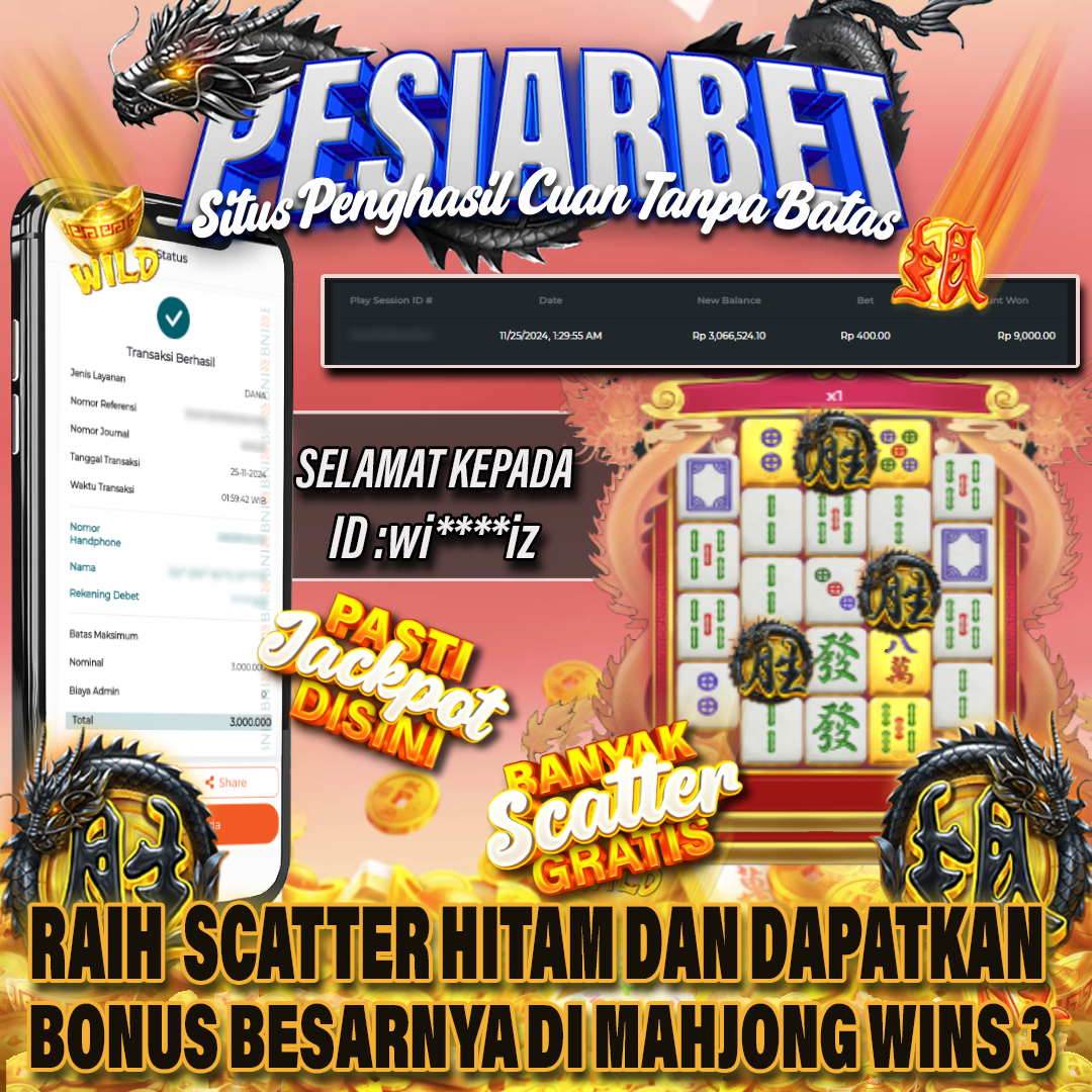 Selamat Kepada Id : WI***IZ Atas Withdraw Rp 3.000.000 Juta Hari ini. Ditunggu Withdraw Selanjutnya dan ajak juga teman temannya bergabung di Pesiarbet