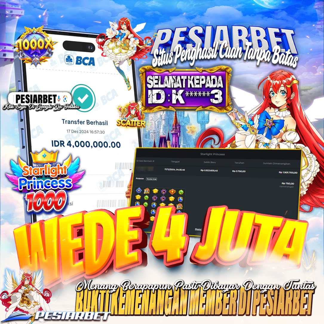 PESIARBET Bukti Kemenangan Slot STARLIGHT PINCESS 1000