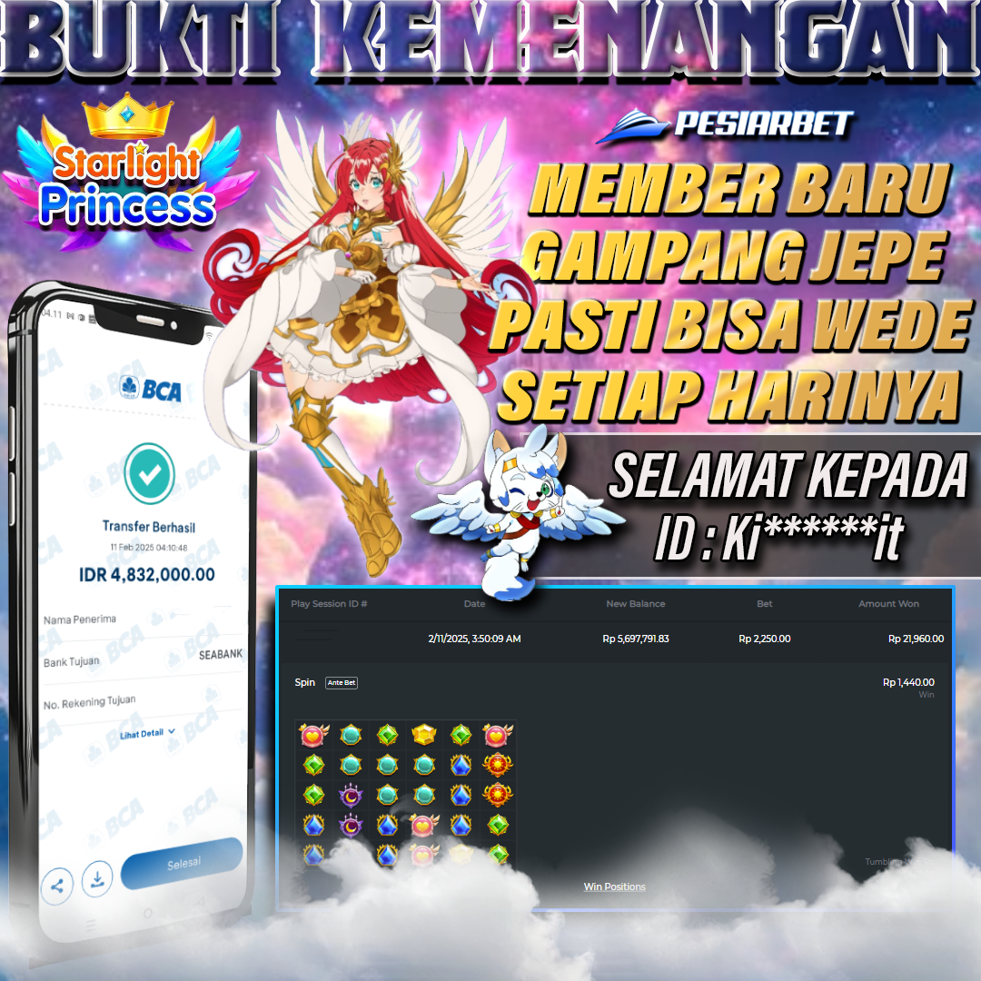PESIARBET Bukti Kemenangan Slot STARLIGHT PRINCES 1000