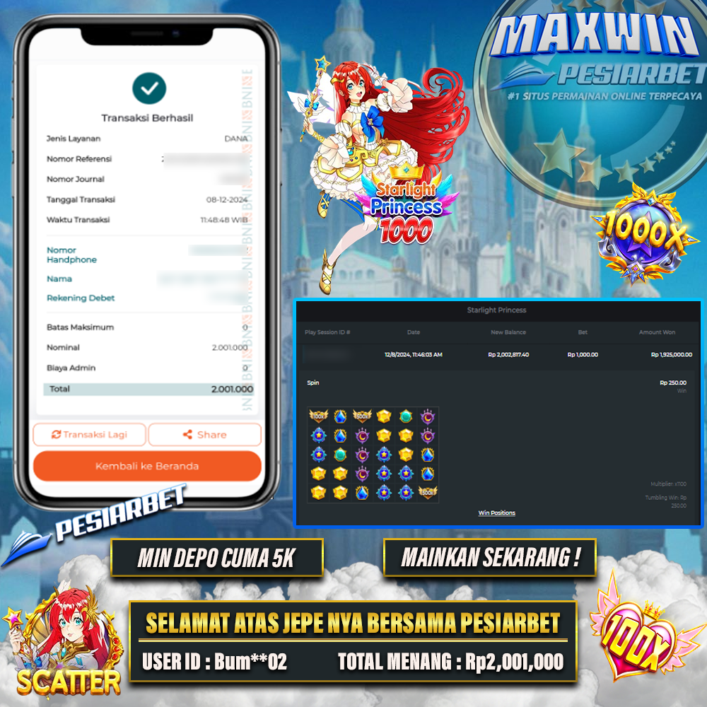 PESIARBET Bukti Kemenangan Slot Starlight Princess 1000