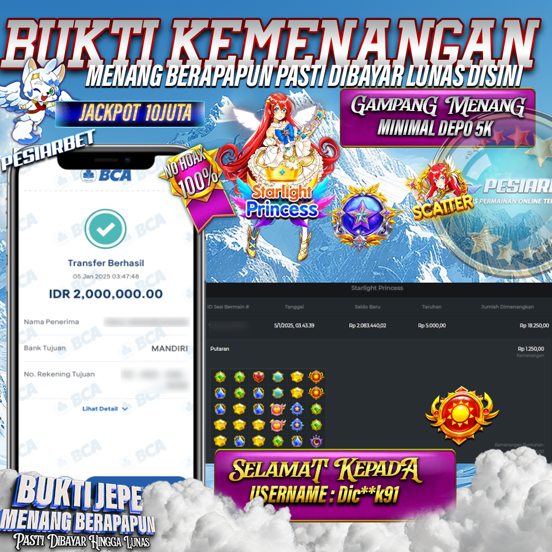 PESIARBET Bukti Kemenangan Slot STARLIGHT PRINCESS