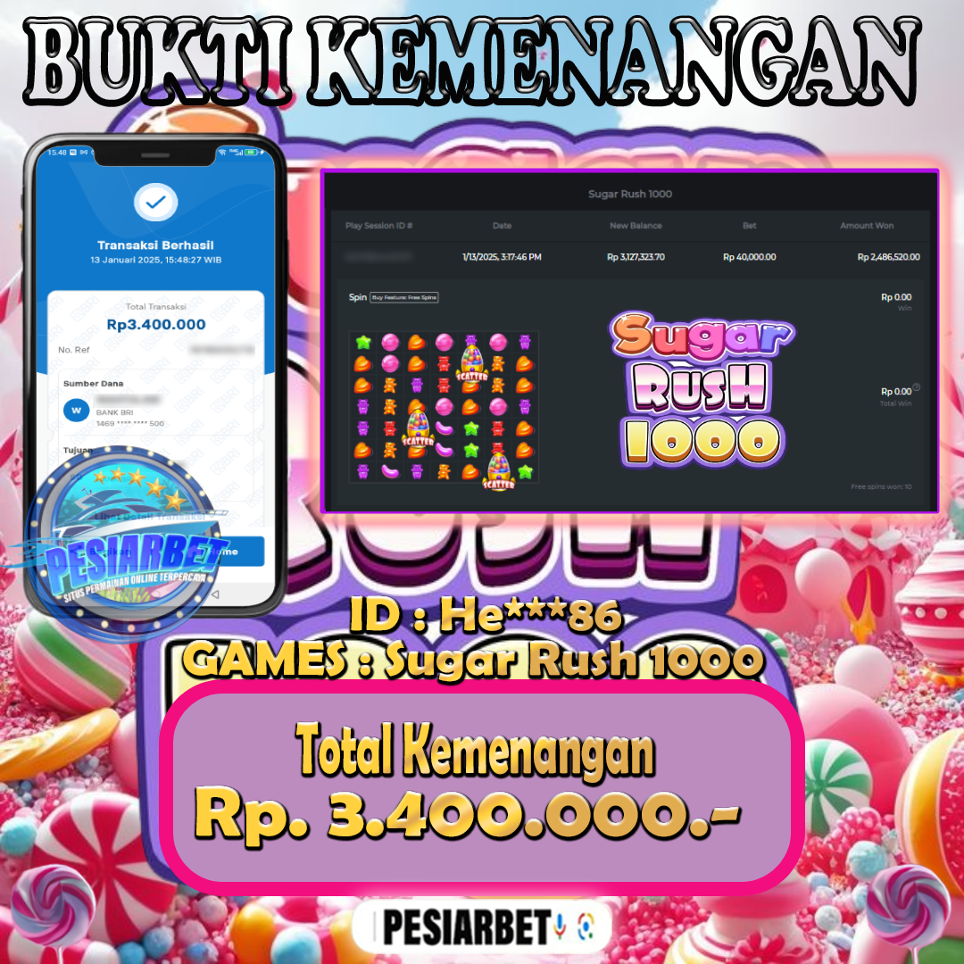 PESIARBET Bukti Kemenangan Slot SUGAR RUSH 1000