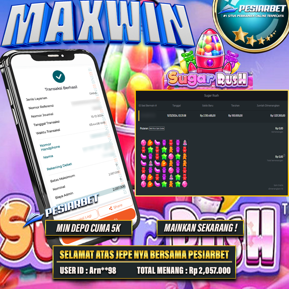 PESIARBET Bukti Kemenangan Slot SUGAR RUSH