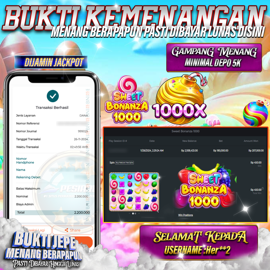 PESIARBET Bukti Kemenangan Slot SWEET BONANZA 1000