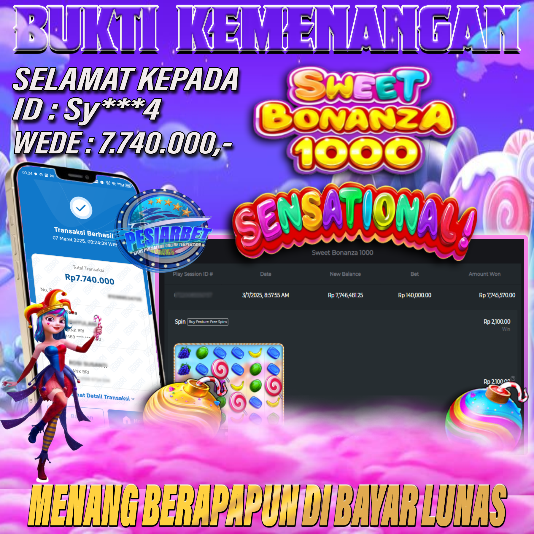 PESIARBET Bukti Kemenangan Slot SWEET BONANZA 1000