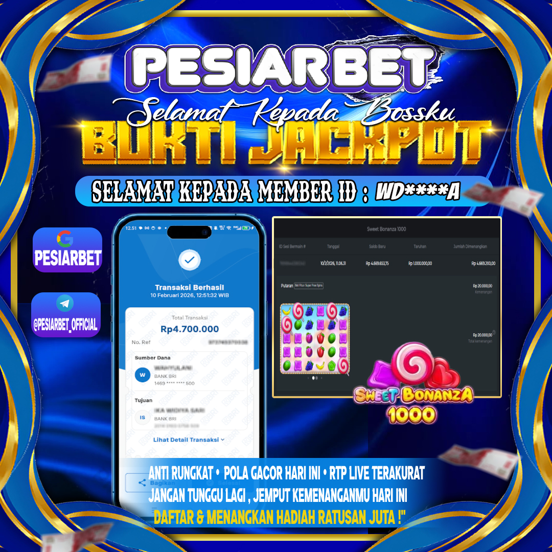 Selamat Kepada Id : WD****A di di Atas Withdraw Rp 4,700,000 Juta Hari ini. Ditunggu Withdraw Selanjutnya dan ajak juga teman temannya bergabung di Pesiarbet.