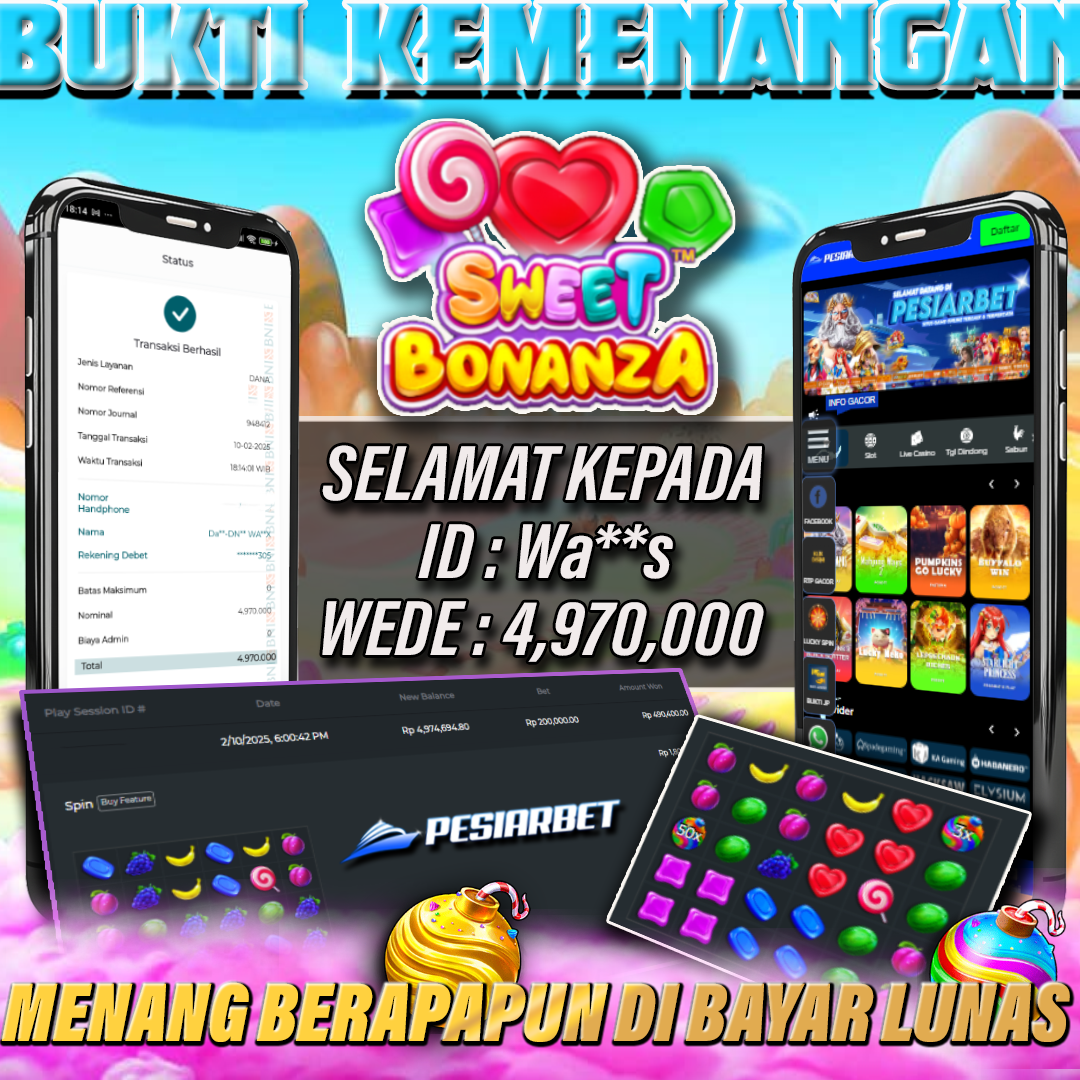 Selamat Kepada Id : Wa**s dii di Atas Withdraw Rp 4,970,000 Juta Hari ini. Ditunggu Withdraw Selanjutnya dan ajak juga teman temannya bergabung di Pesiarbet