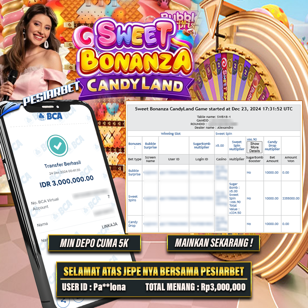 PESIARBET Bukti Kemenangan Slot SWEET BONANZA CANDY LAND